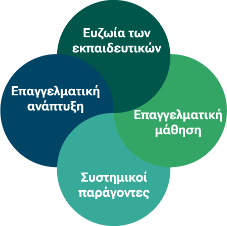 Συστημικοί παράγοντες: Εξέταση όλων των συστημικών παραγόντων που επηρεάζουν άμεσα ή/και έμμεσα την ευζωία και την επαγγελματική μάθηση των εκπαιδευτικών, συμπεριλαμβανομένων των αναλυτικών προγραμμάτων, της αξιολόγησης, των πολιτικών αποφάσεων, της ενσωμάτωσης της τεχνολογίας, της υποστήριξης, της σχολικής ηγεσίας, των σχέσεων γονέων-σχολείου και όλων των άλλων παραγόντων που επηρεάζουν την ποιότητα της εκπαίδευσης.
